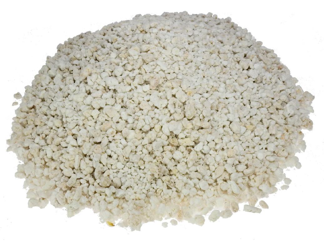 Only expanded perlite is used in the hobby and professional gardening sector. The rock is heated to up to 1000 °C in industrial plants, which can increase its volume up to twentyfold. Expanded perlite is white in colour and has a low density.