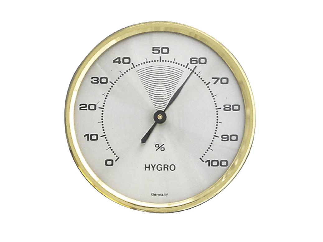 Das klassische Hygrometer mit Messingring misst die Luftfeuchtigkeit in Ihren Räumen. Wenn der Wert längere Zeit außerhalb der gekennzeichneten Komfortzone von 40 bis 60% liegt, können Sie reagieren.