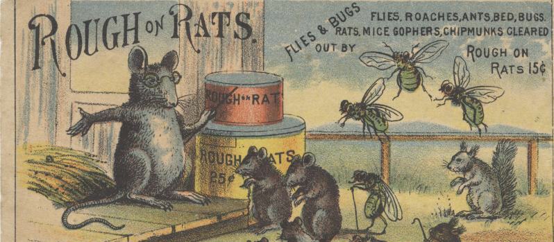 Advertisement (circa 1875) for a mouse and rat poison that also works against sucking insects, cockroaches and much more. It's amazing that humanity has survived.